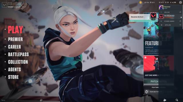 當你啟動 VALORANT 時,應該有一個欺騙活躍!你朋友名單上的朋友。這表明該軟件正在運行並且您顯示為離線。您可以隨意排隊參加競爭性的、未評級的死亡競賽,或者只是在訓練場放鬆一下,而不收到朋友的通知。