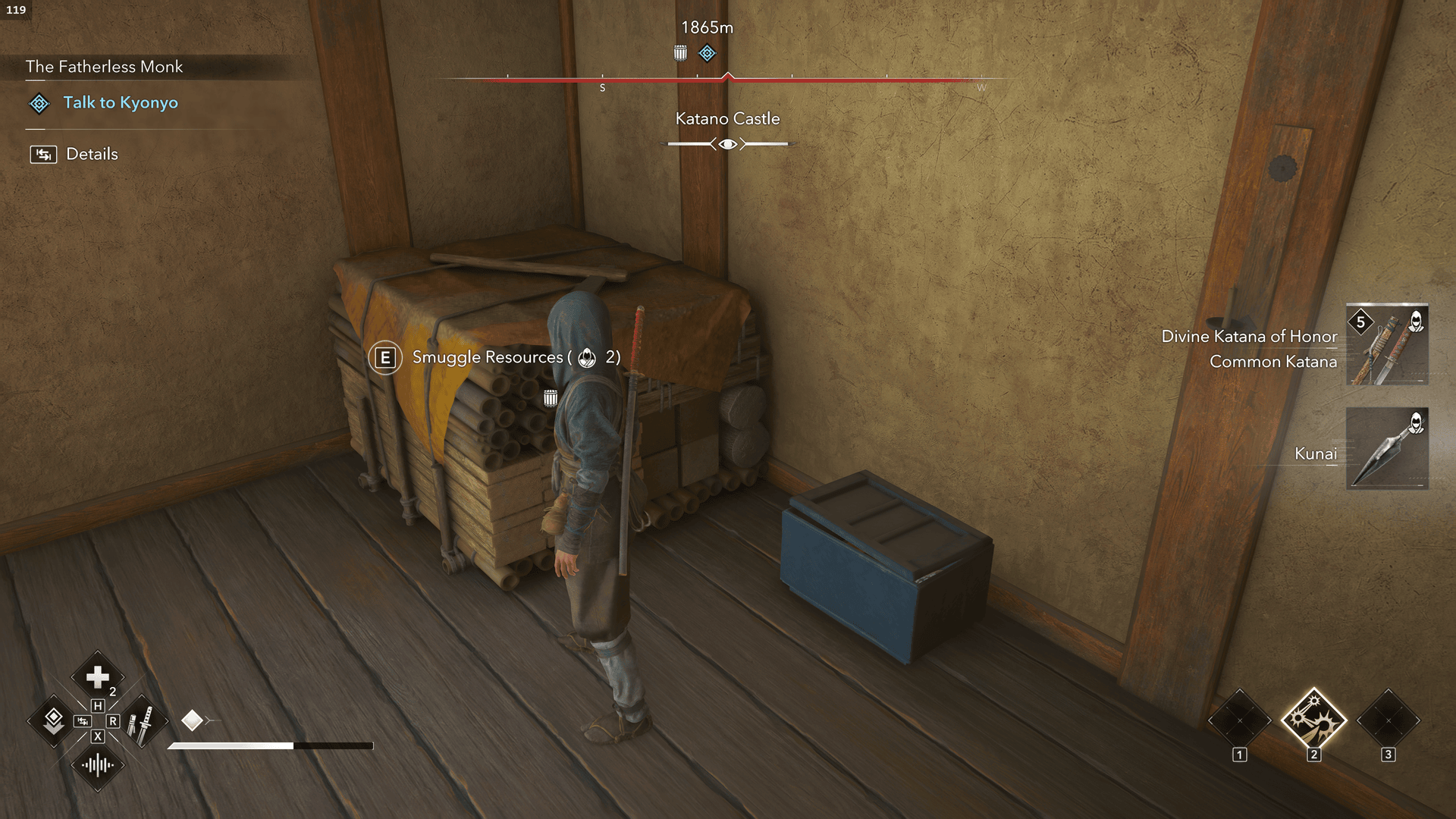 然而,城堡周圍還有很多額外的獎勵。你可以掠奪數十個寶箱,收集藏身處材料,甚至從敵人眼皮底下走私資源。走私資源是完成《刺客信條:暗影》支線任務“走私者的逃亡”所必需的,並且需要您有可用的偵察兵。這些資源通常可以在城堡場地上鎖的建築物中找到,需要附近的鑰匙才能打開。