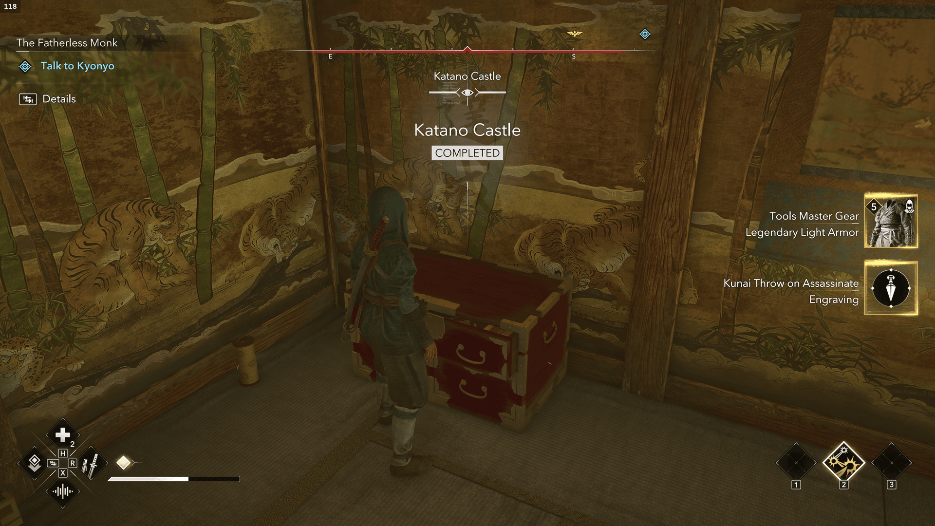 一旦你掠奪了這個特定的箱子,你就可以走下主城堡的更多樓梯,掠奪一系列額外的獎勵。然而,在寶箱被掠奪後,Katano 城堡在《刺客信條:暗影》中被標記為完整。