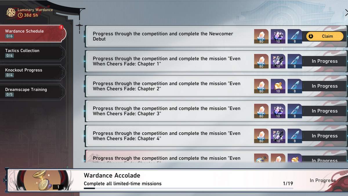 Luminary Wardance 活動不僅僅是戰鬥樂趣,它還提供了以盧卡為主角的紮實故事。雖然該活動將被記錄在常規回憶錄中以供以後玩,但限時獎勵使其值得在服務器時間 10 月 21 日 03:59 截止日期之前完成。獎勵包括: