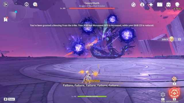 使用任一Mavuika 或旅行者的元素技能可快速摧毀每根柱子。當你摧毀一根柱子時,你會看到一個小過場動畫,你可以按 T 鍵瞄準並發射火焰斜線,對 Boss 造成毀滅性的傷害。