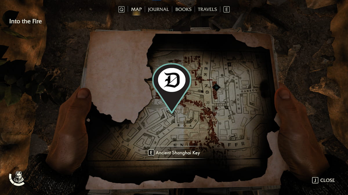 | 上海 | 當你重游上海時,你必須長途跋涉才能回到與吉娜穿過的小河和小橋。您必須原路返回穿過該區域,直到到達河流。從這裡開始,向南走,沿著牆到達一堵牆,在那裡你可以潛入水中,找到一塊木板擋住你的去路。抬起它並走到另一邊拿到鑰匙。 | ![]() |