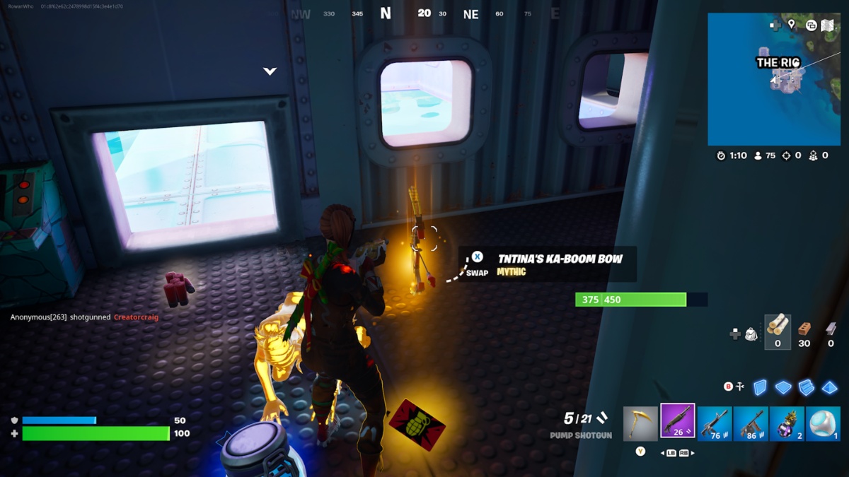 TNTina 將她的神話弓和一張鑰匙卡扔到了附近的金庫中。點電子競技的屏幕截圖