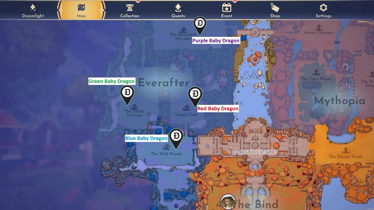 山谷可能是一個非常難以導航的區域,尤其是當您剛剛開始時,所以這裡有一張地圖,上面標有每隻小龍的具體位置標記以幫助您找到它們。所有幼龍都會在永恆生物群系中的指定區域內徘徊相當長一段時間,但它們永遠不會離開自己選擇的區域。