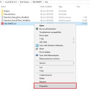 右鍵單擊 VALORANT 的可執行文件。點電子競技的屏幕截圖