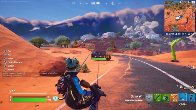 拖鉤炮非常獨特,因為它不是傳統武器。你可以用它來破壞風景,但最好的部分是它如何與車輛配合使用。如果你射擊一輛車,你就會拴在它上面。如果汽車移動,它會拖著你和你的朋友一起度過一些搞笑的時刻。您還可以使用控制器上的左搖桿將自己捲入,然後通過推入右搖桿來分離。
