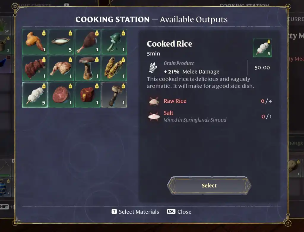 單獨食用煮熟的米飯可以讓你的近戰傷害提高 21%,持續 50 分鐘。當然,就像在現實生活中一樣,將食材混合起來總是比單獨食用更好。如果你把煮熟的米飯帶到農民艾米麗·弗雷 (Emily Fray) 那裡,你會發現一些食譜,其效果比僅僅食用該成分本身要好得多。