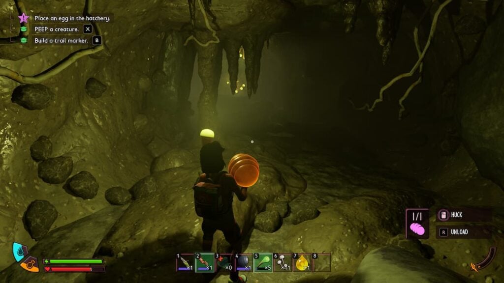 你無法將這些雞蛋添加到你的庫存中,所以你必須將它們隨身攜帶。而且手裡有雞蛋是打不了的。如果你在搬運雞蛋時被敵人擊中,你就會掉落雞蛋,所以不要放慢速度。繼續跑,直到到達基地和孵化場。