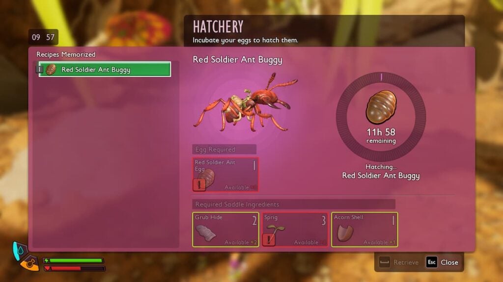 首先,你無法真正“抓住”紅兵蟻並開始騎它。相反,您需要完成主要故事並解鎖孵化場的配方。為了您的方便,我們分節單獨解釋了所有內容。