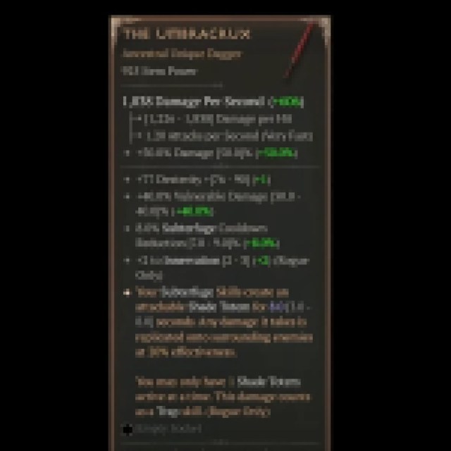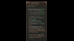 如果你的角色力量更強一點,你可以去噩夢地下城並儘快完成它們。最終的老闆總是會掉落一些驚人的戰利品,例如傳奇武器,但你偶爾也會發現獨特的物品掉落。如果你開始衝破噩夢地下城的最高層,那麼找到獨特的武器就會容易得多,最終你會找到 Umbracrux 武器。請記住,您需要使用盜賊才能掉落該物品。