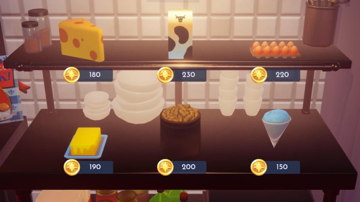 奶酪和雞蛋是最容易獲得的原料,因為在解鎖建築物並收集一些額外的星幣後,您可以隨時從雷米之家的廚房購買它們。這是一個早期的遊戲地點,因此只要您遵循迪士尼夢光谷的主要故事情節,您就可以在玩遊戲的前幾個小時內做好準備。