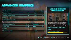 為了減少 Star Wars Outlaws 中的模糊,您首先需要減少“鏡頭和電影效果質量” 在高級圖形圖形設置部分。