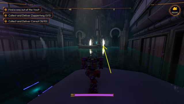 離開避難所後,您就可以使用新的水上行走能力進入某個位置。確保走到那裡並滑進去。