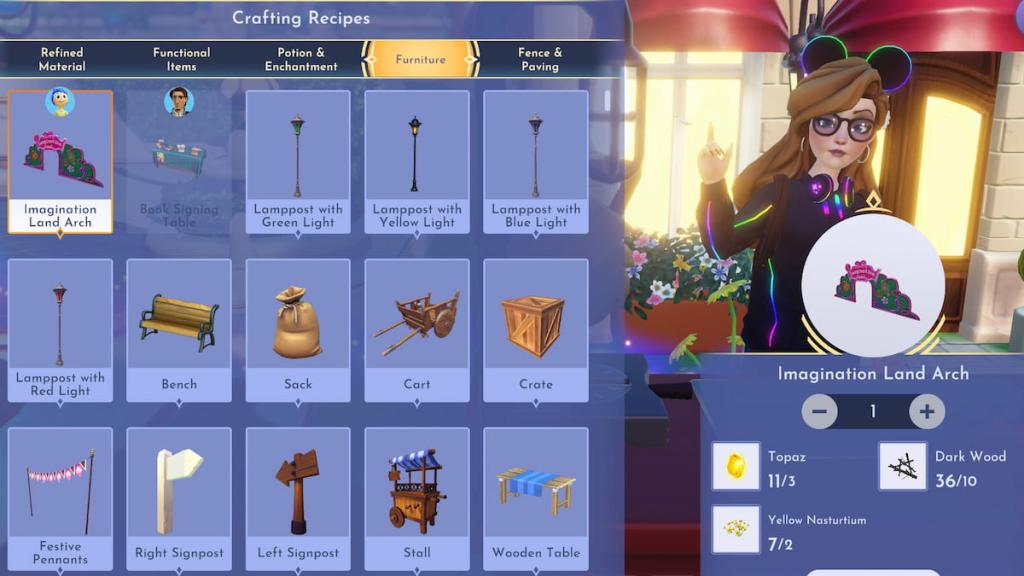 手頭上有所有三件物品,前往任意製作站,進入家具,然後在製作之前選擇想像力拱門。現在你可以帶著它回到喬伊身邊,引導她提出另一項任務讓你去解決。