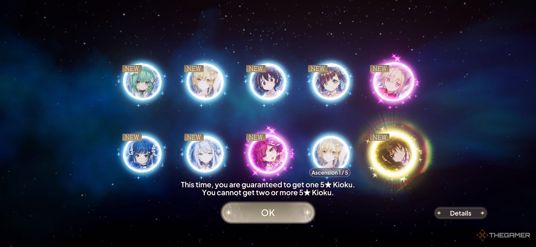 每個字符都被賦予一個星級取決於它們的掉落率,越稀有的角色具有越高的星級(以及啟動的統計數據)。當您使用以下顏色協調進行拉動時,您會看到這一點。您可以從任何橫幅上獲得任何稀有的角色。