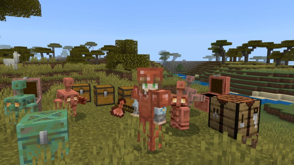 這銅傀儡是一個新的生物,你可以製造並在周圍尋求幫助。這個生物可以通過將雕刻的南瓜放在銅塊上來創建。它們生成時帶有一個銅箱,您可以在其中放置物品以使銅傀儡分類到其他箱子中。他們是組織你的基地的好盟友。