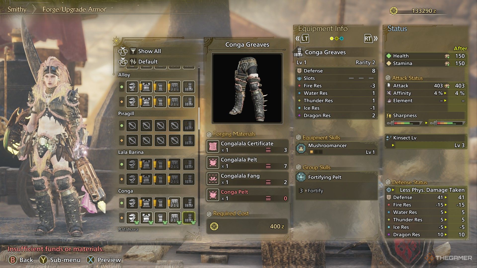 如果您是那種在故事進展之前定期執行支線任務的人,那麼您應該在康加盔甲可用後立即鑄造它。這套盔甲為您提供蘑菇術士技能,讓您可以消化否則無法吃的蘑菇。