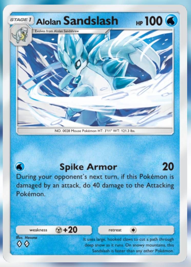 該活動的同名者是阿羅拉九尾,轉載自《天界守護者》,作為華麗的全藝術宣傳片,九尾站在暴風雪中的山上。雖然在競爭上不可行(Articuno ex 在同一件事上做得更好、更一致),但它是您收藏的絕佳作品。
