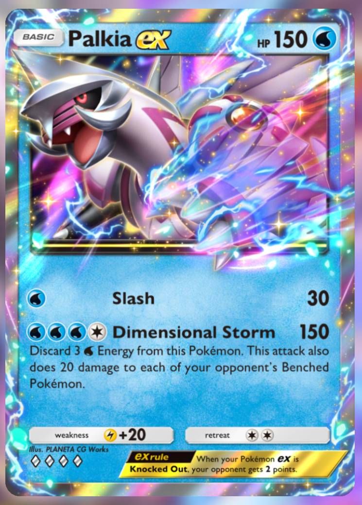 至於次要攻擊者,太空口袋妖怪帕路奇亞是您最好的選擇之一。憑藉其低成本的斬擊攻擊和維度風暴中更強(儘管成本高昂)的打擊,Palkia ex 是 Ice Eeveelution 的合適合作夥伴,從一個不錯的遊戲早期攻擊者變成了一個可以一擊結束比賽的強者。