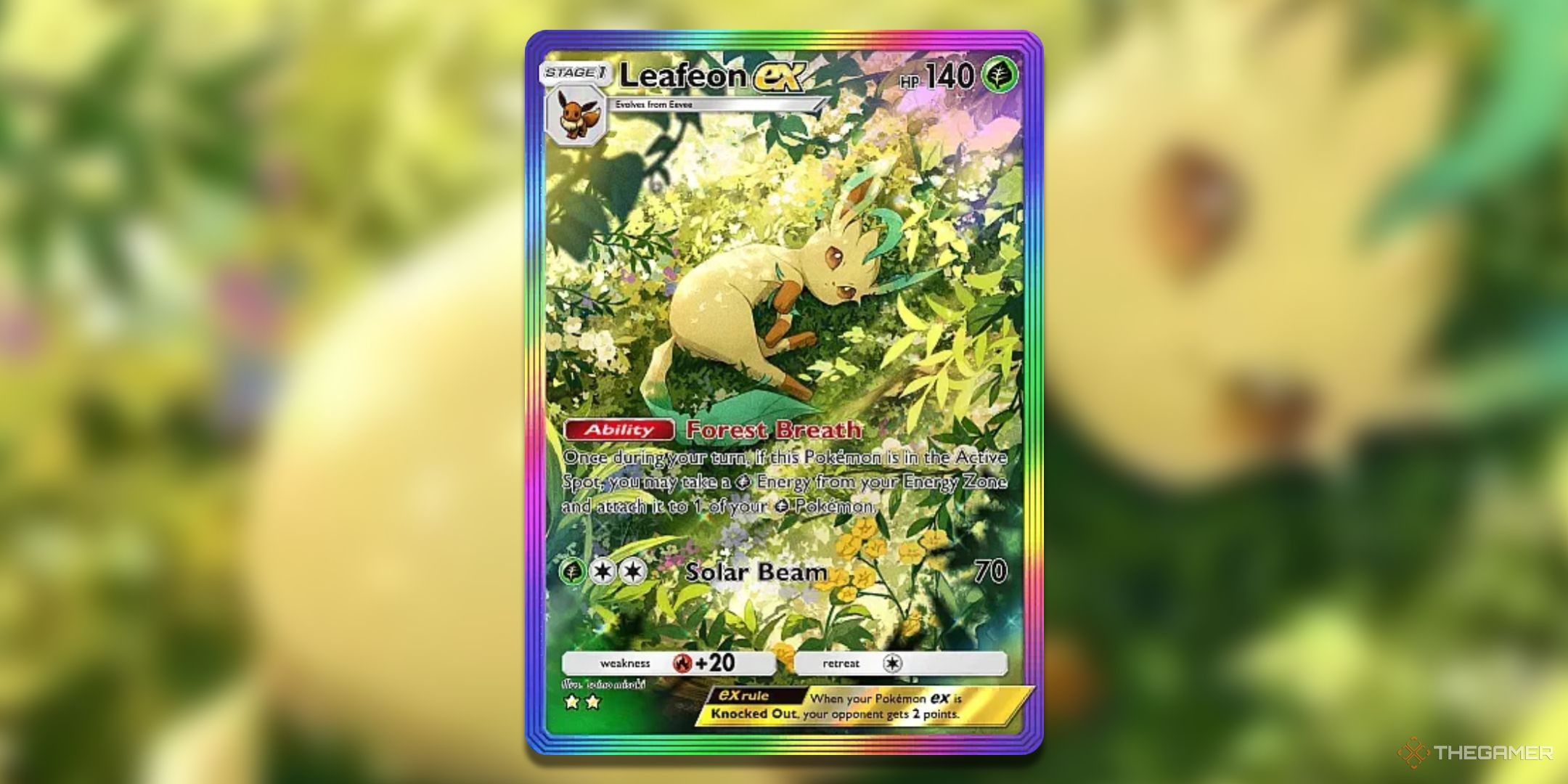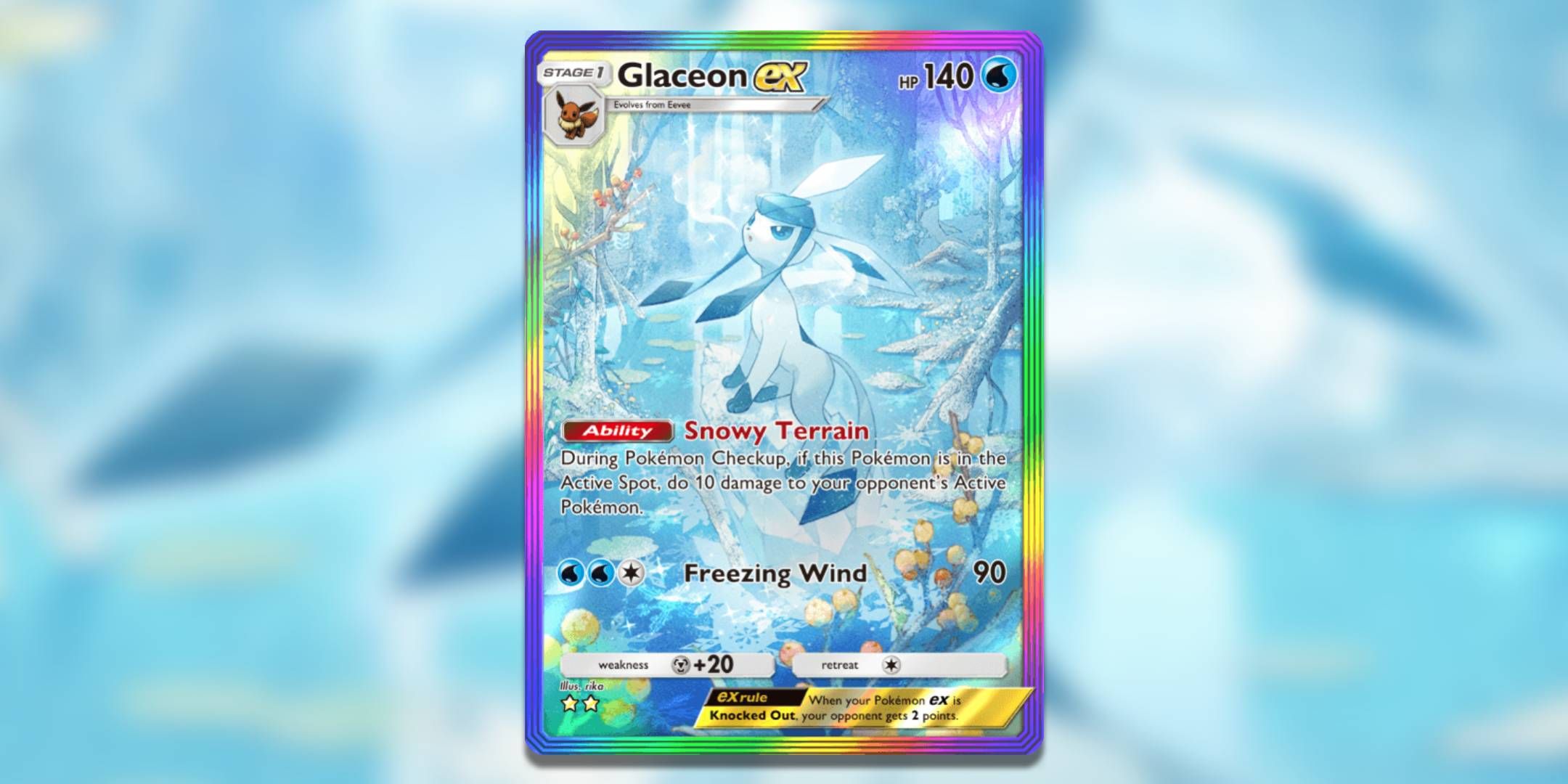 雖然 Glaceon 的 140 HP 與其他強大的 Ex Pokemon 相比並沒有什麼特別之處,你的 Iridas 可以為其提供最多 80 點額外 HP。如果運行巨型斗篷變體,很少有神奇寶貝可以在一個回合中將其擊倒,而且許多神奇寶貝只能依靠一點運氣才能做到這一點。