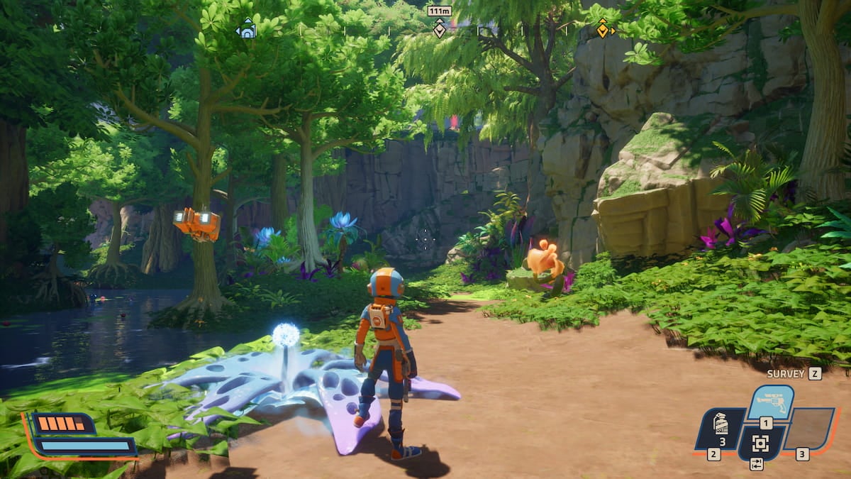 當我第一次踏上新家園時,這裡色彩繽紛、充滿活力的環境給我留下了深刻的印象。當然,有時邊緣有點模糊,但感覺就像在探索一個熱帶天堂——如果那個天堂裡擠滿了想要你死的生物。這只是開始。更多的行星等待被發現,每一顆都比上一個更奇怪。引導你完成這一切的是你的機器人伴侶 Eko,他如此有個性,以至於讓你想知道他們為什麼是一個機器人。他們會嘲笑你的選擇,拿你的不幸開玩笑,有時甚至會說得太多。值得慶幸的是,如果 Eko 開始不再受歡迎,有一個方便的小功能可以讓你降低喋喋不休的聲音,或者在你今天受夠了無禮的情況下完全讓它安靜下來。