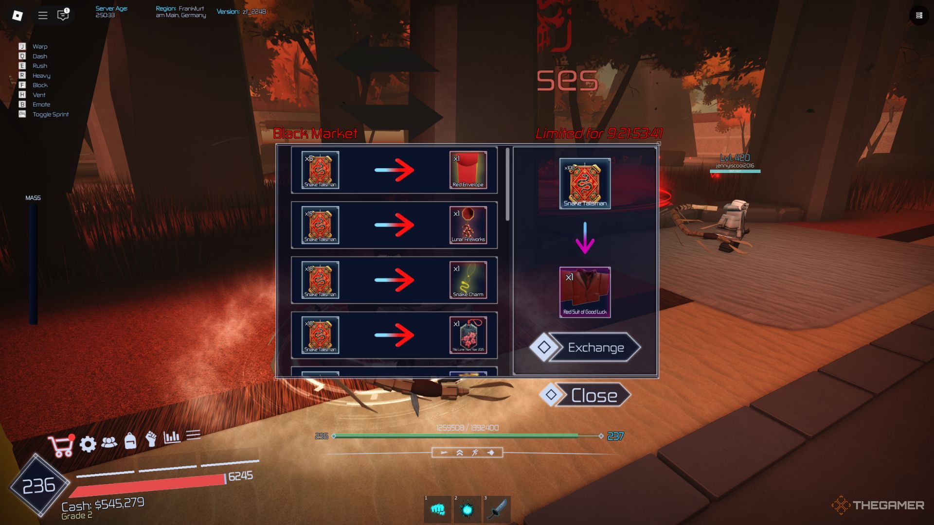 蛇符在柔術無限,迅速徹底取代了黑市上的拐杖糖,成為這裡的主要貨幣。現在,您可以購買稀有的盔甲、頭銜、武器和其他專門用於蛇符的有用物品。