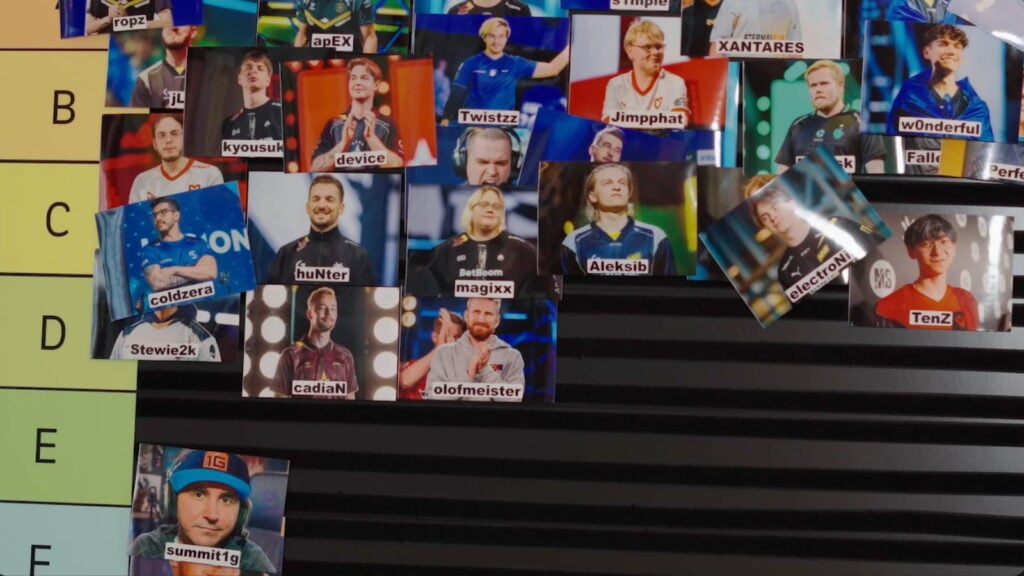 在 FaZe Clan 的 YouTube 視頻中,s1mple 與他的隊友 karrigan、rain、frozen 和 EliGE 一起在經典的 S 到 F 等級列表中對玩家進行了排名。每個隊友都會挑選 10 張球員卡進行評判,這就是事情變得有趣的地方。