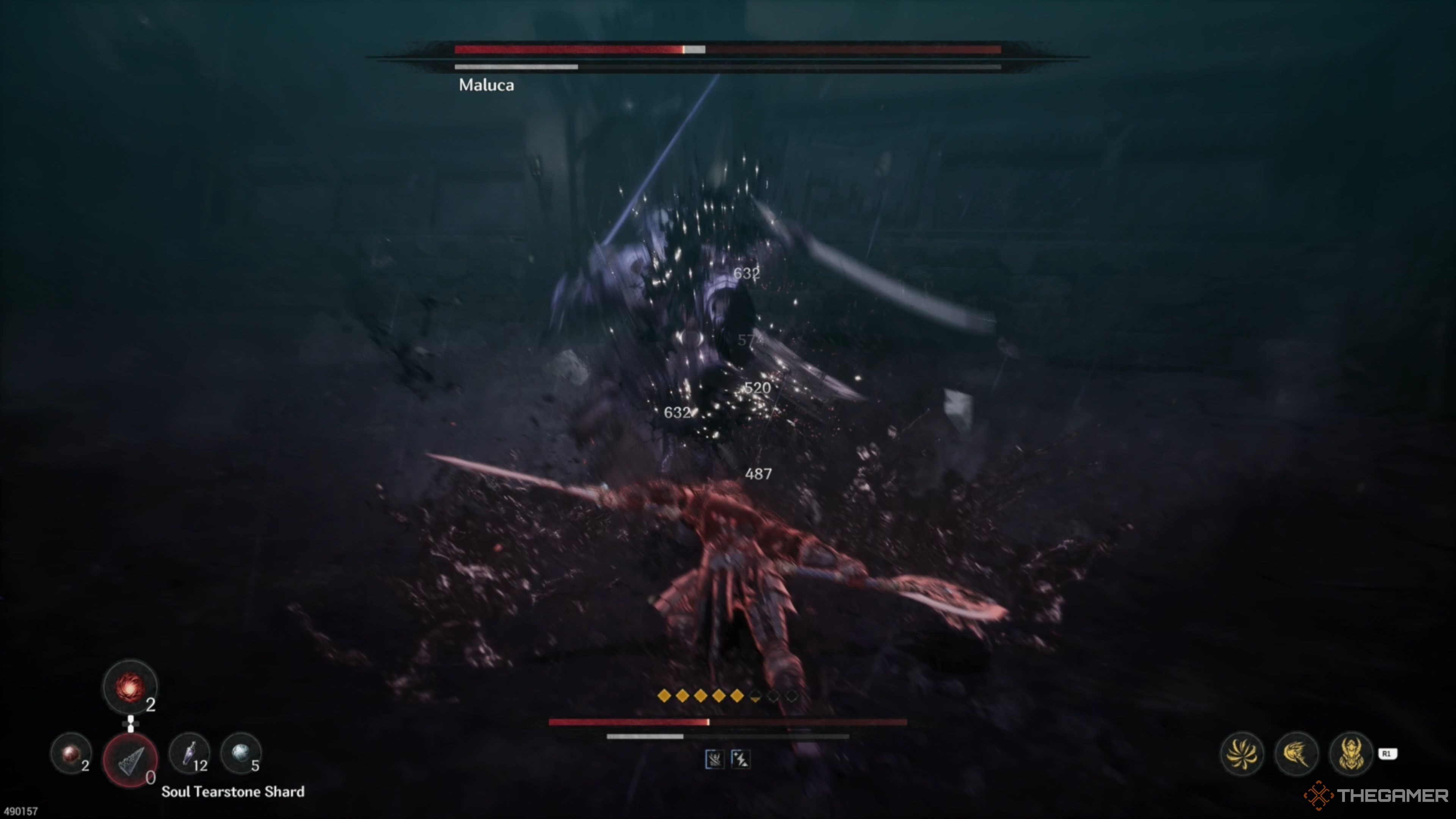 這裡有馬盧卡連續三次高高躍起,猛烈撞擊地面,可以處理造成嚴重傷害或消耗大量耐力。等他跳到空中,然後當你看到他下降的那一刻就要警惕。對所有三個大滿貫重複此操作,讓您能夠跑起來並發動一連串攻擊在他身上!