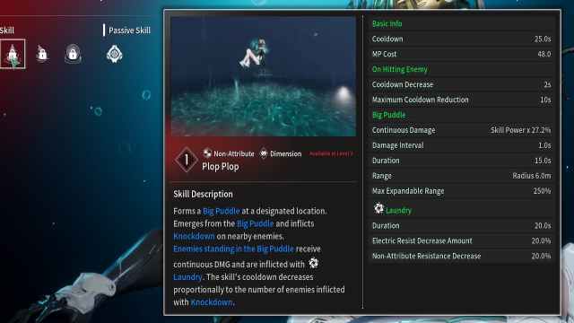 - 飲水量是瓦爾比的被動技能,當她站在水中時,可以減少她的技能的 MP 消耗。任何水都算在內,甚至是其他能力創造的水池。