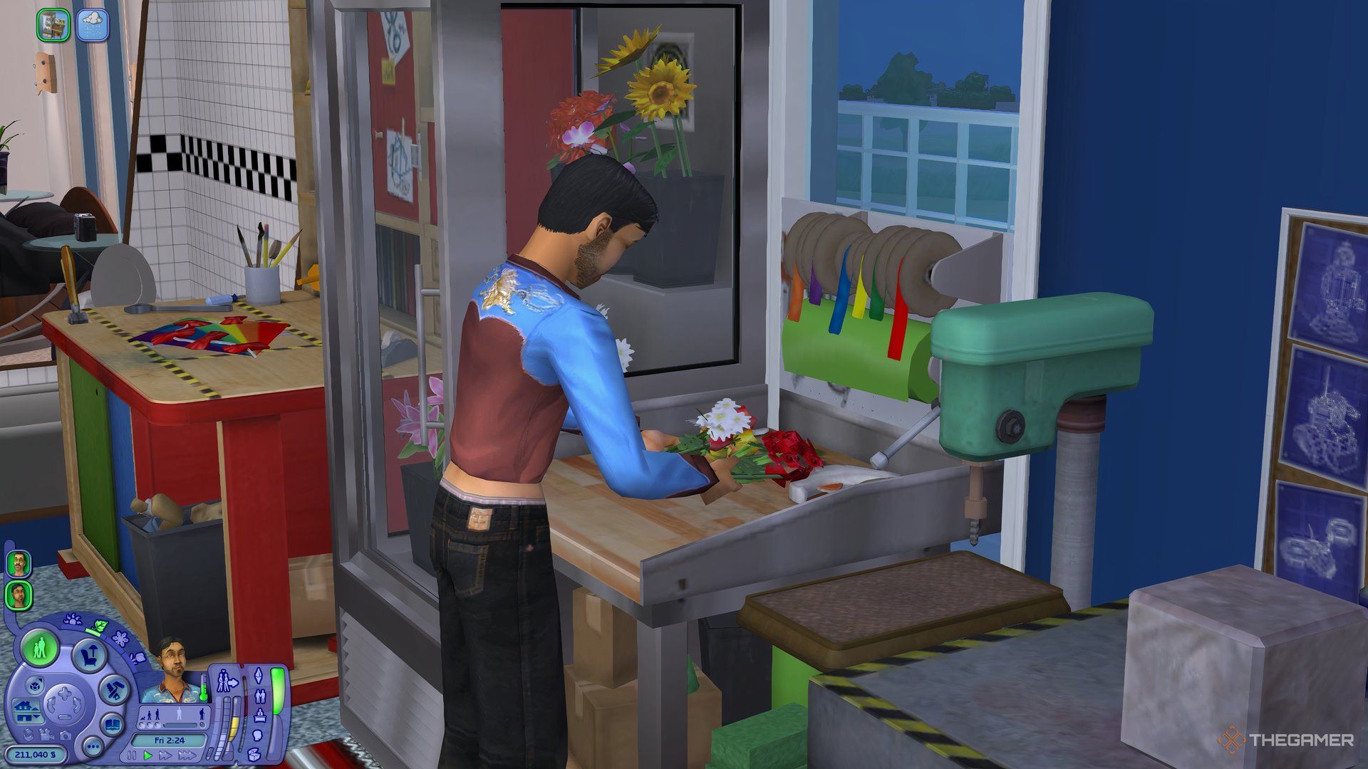 銀 | 您的模擬市民終於有勇氣將鮮花組合成插花,現在可以製作混合花束了。桌上還有經典的玫瑰花束。 |