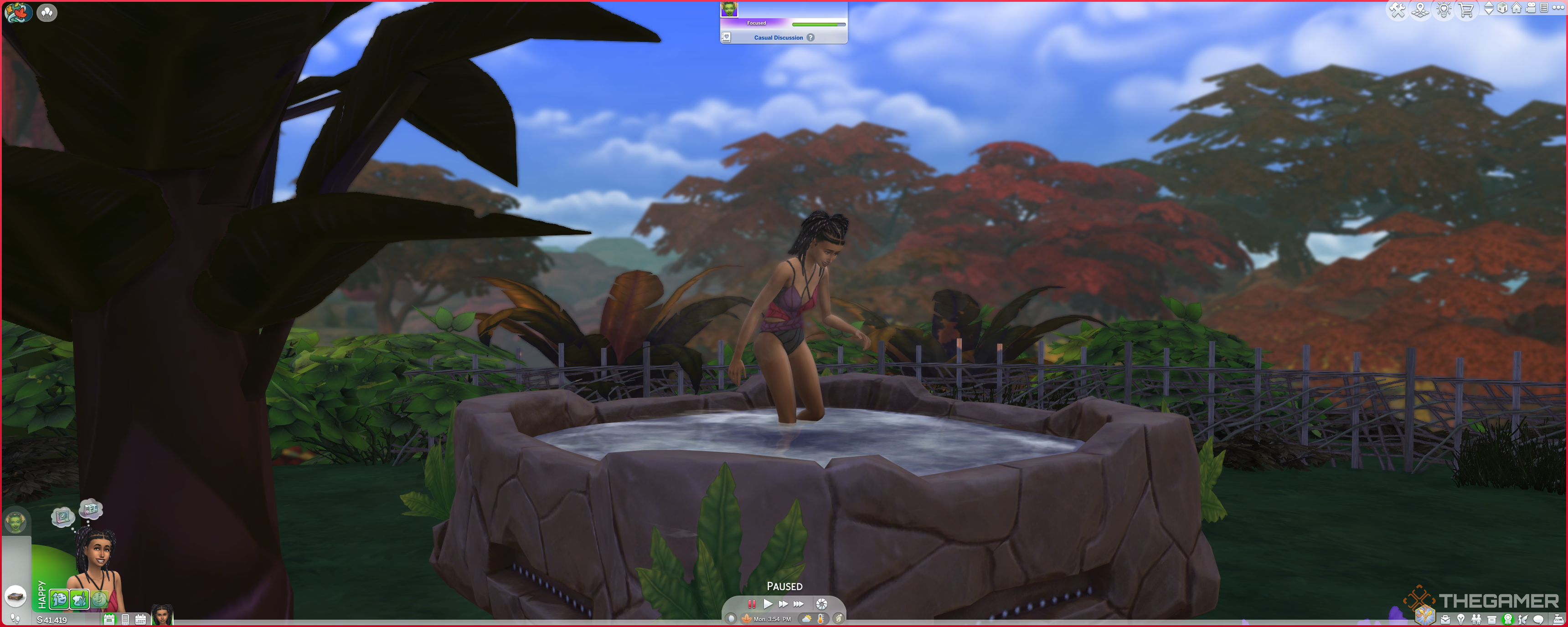 你需要領取流葉泳衣並使用它創建一套服裝創建一個SIM卡前選擇熱水浴缸並選擇“浸泡”。