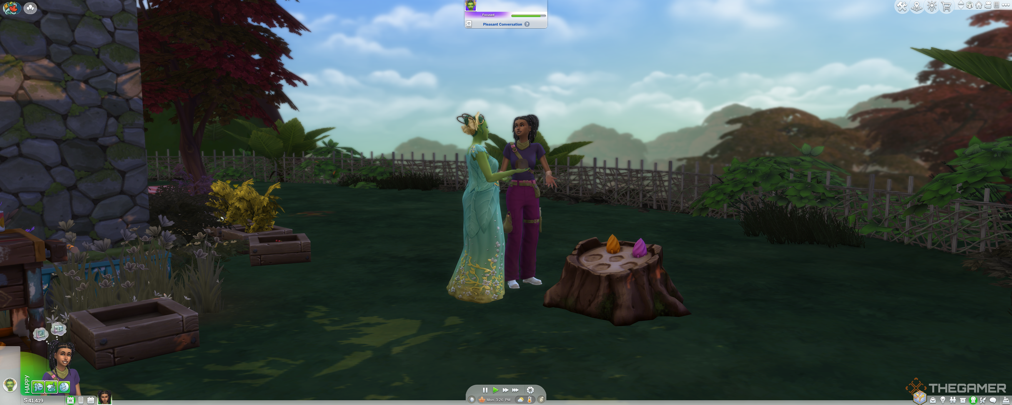 下一個,找到兩個模擬市民並使用社交菜單“詢問 PlantSims”。你會發現他們會給你一顆魔豆。有其中六個總共。