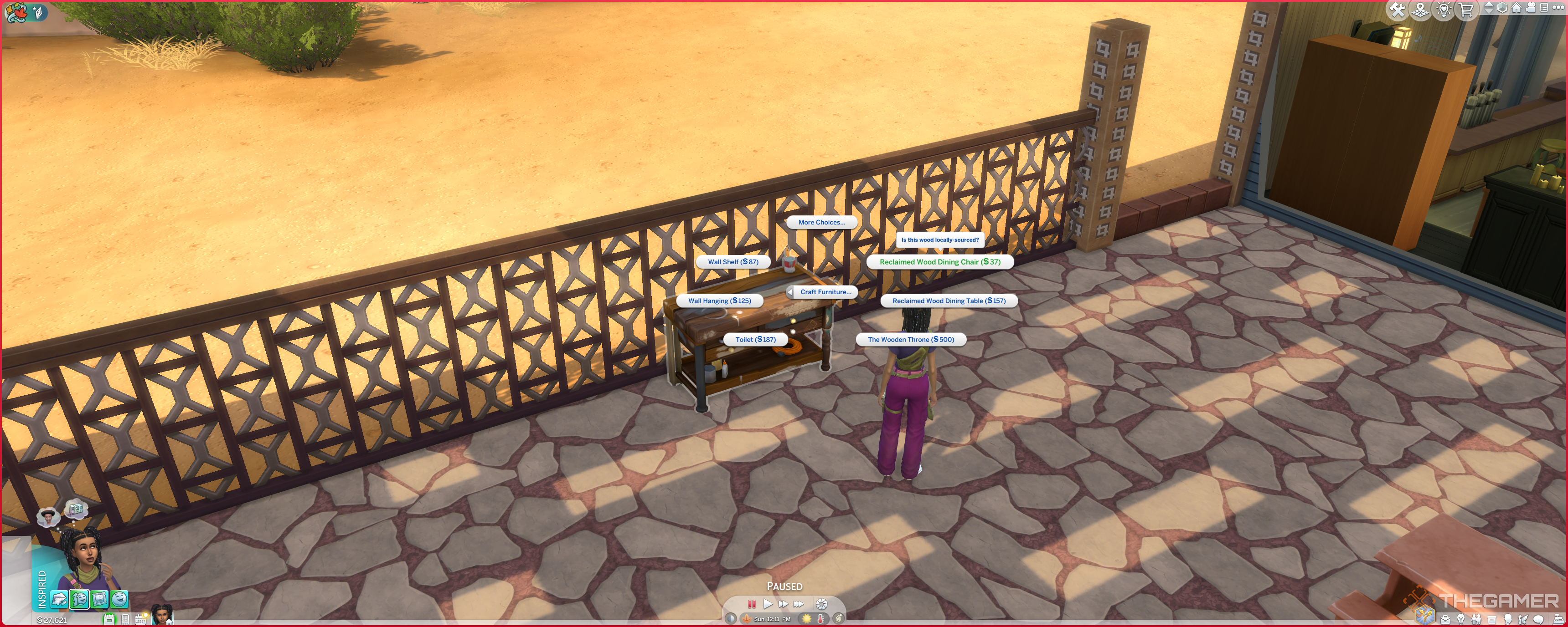 首先,去回到你的家鄉。你應該有木工台仍然來自早期的任務。從這裡您可以選擇工藝家具 > 更多選擇 > 再生木桌。製作它會花費 157 美元。