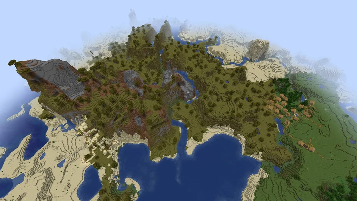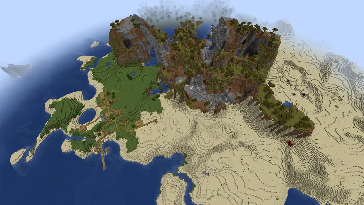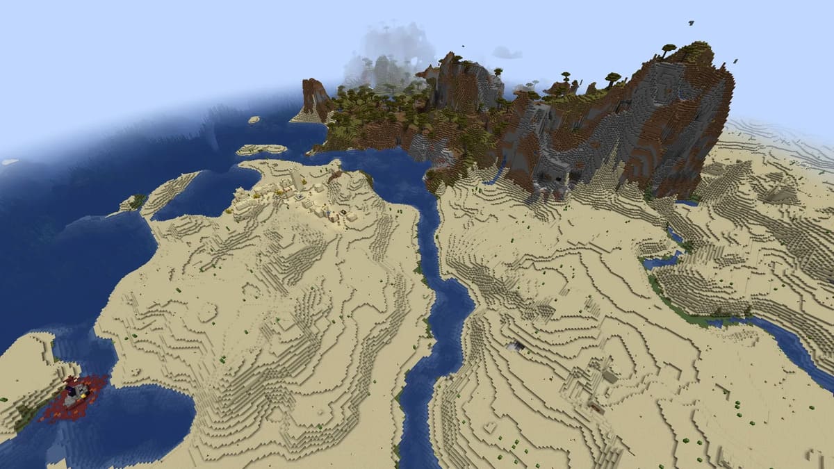 這顆種子獻給破碎的稀樹草原生物群系的所有粉絲,因為它在產卵點附近有兩個實例。第一個可以在出生點的沙漠中找到,其中有一個村莊、一個被毀壞的傳送門和坐標 200、250 處的沙漠神廟。另一個是位於出生點以東坐標 450、450 處的整個破碎的稀樹草原島。