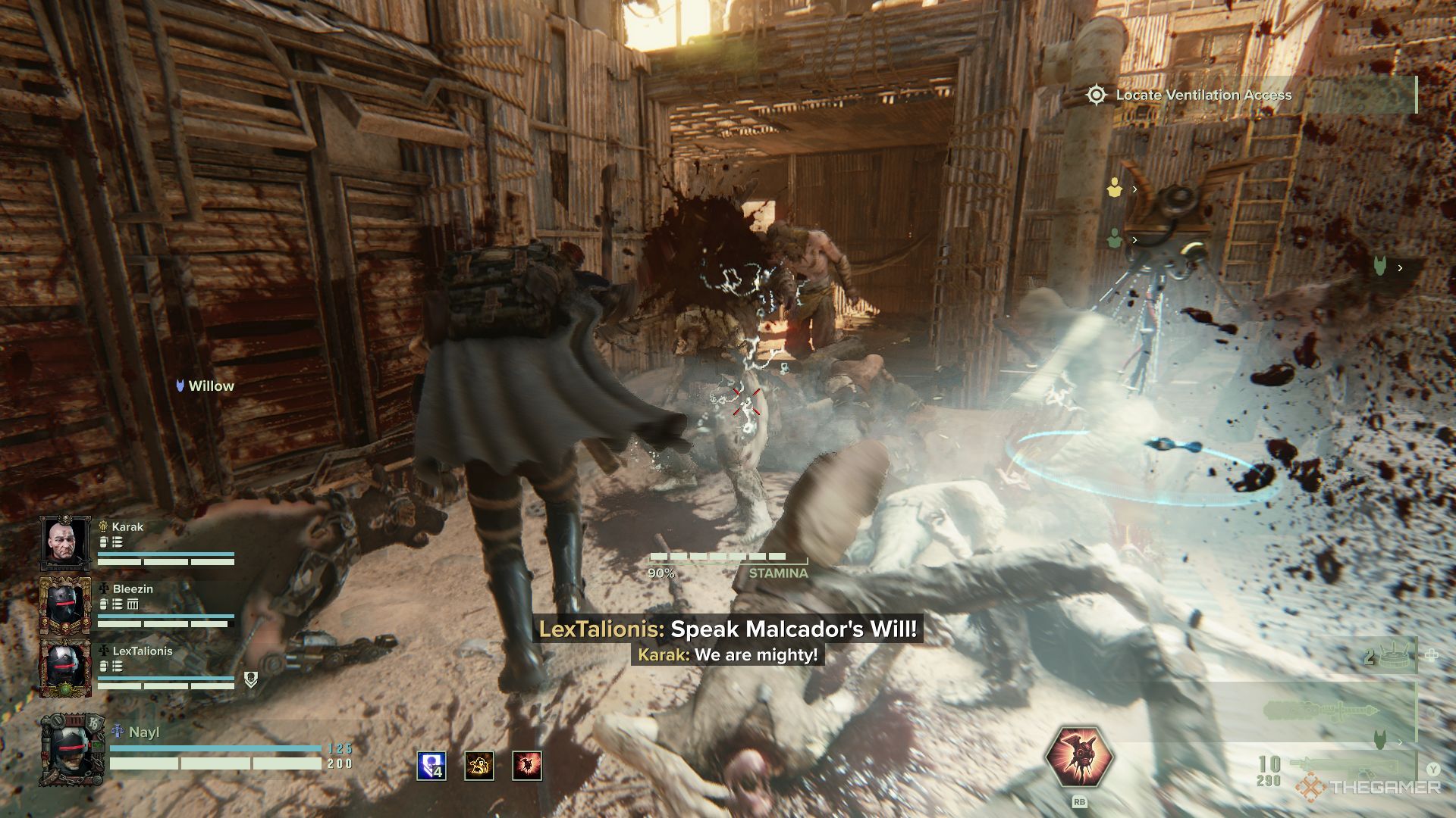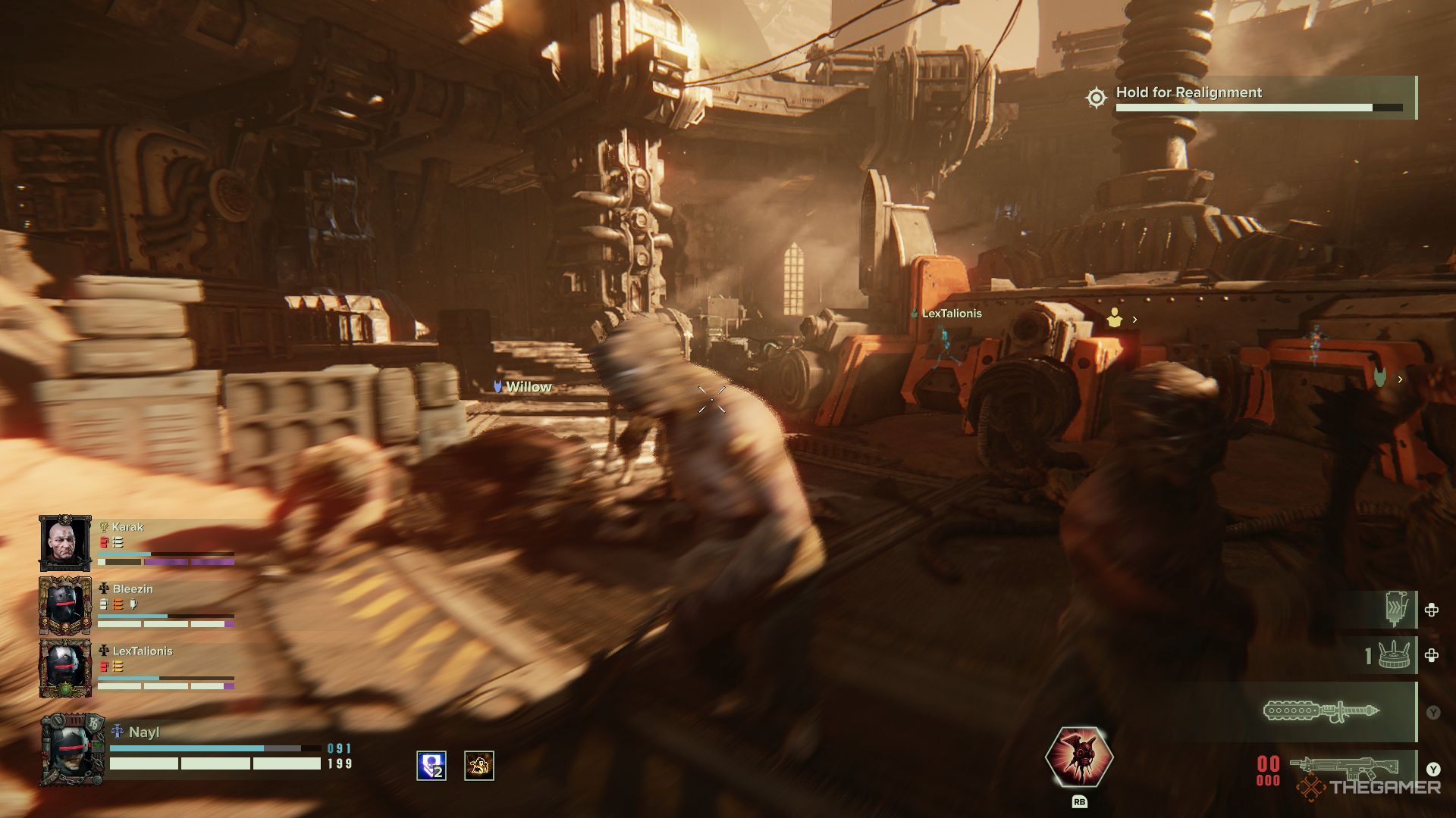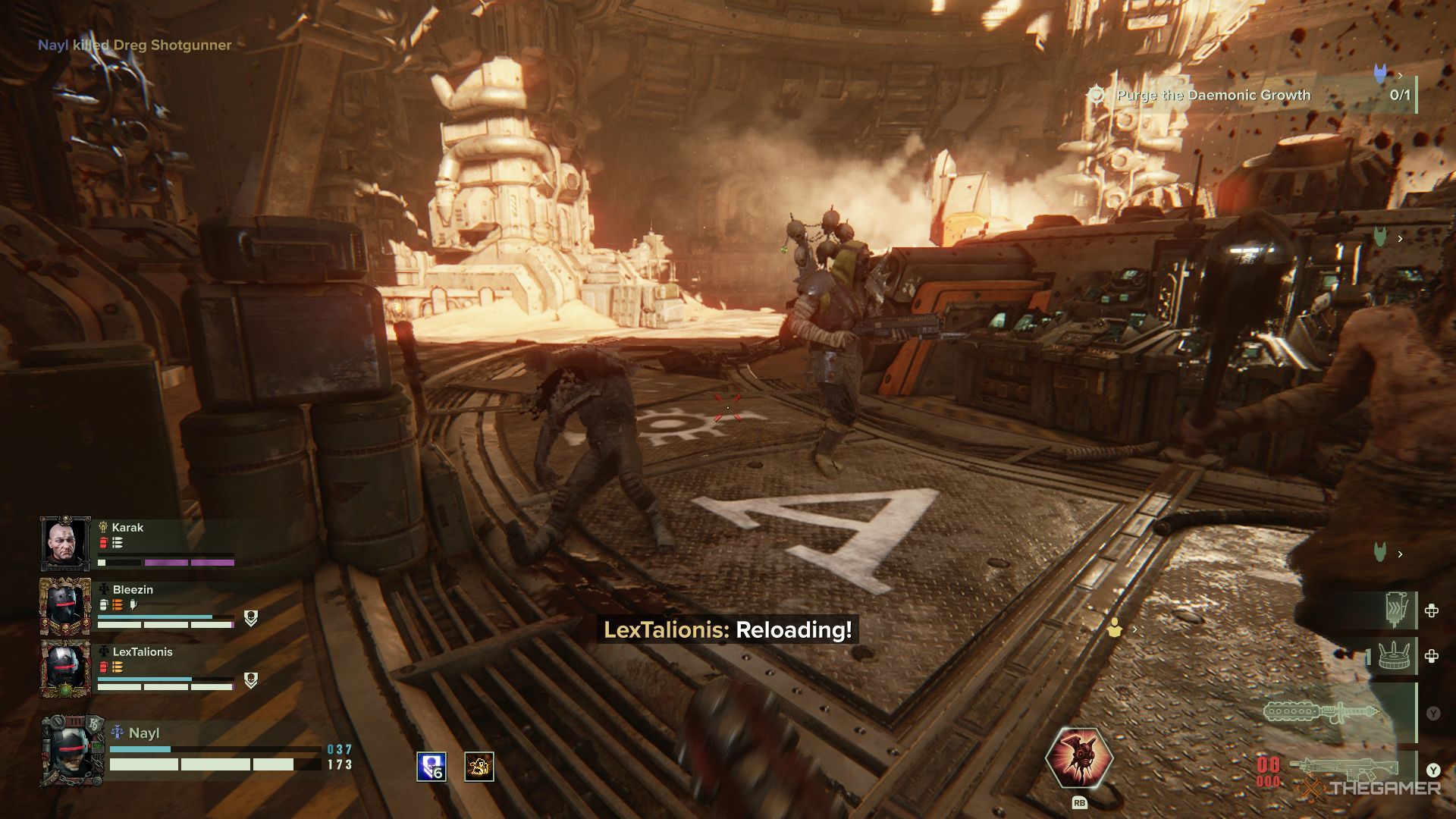 像奧格林或退伍軍人那樣,涉入成群的敵人並向他們開火要困難得多。相反,你需要選擇射擊方式,瞄準弱點、敵人群或特殊敵人,以保持你的彈藥數量較高,敵人的威脅較低。讓你的朋友們用重茬砍倒納垢祝福的大群吧。除非你想因為拿走了地圖上所有的彈藥而被罵。