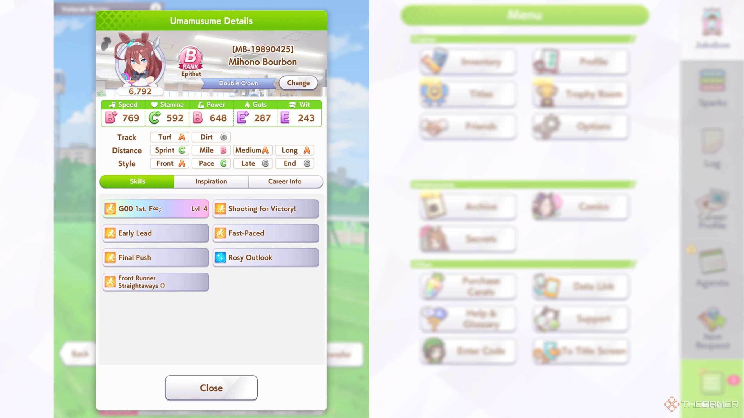 Mihono Bourbon 是 Umamusume: Pretty Derby 中的第一個特色角色,並且當你拉起德比橫幅時,你可以隨時找到她。然而,由於她對各種統計數據的高要求,她可以說是最難構建的角色之一。正如您從上面所看到的,Mihono 主要擅長作為中距離的領跑者。