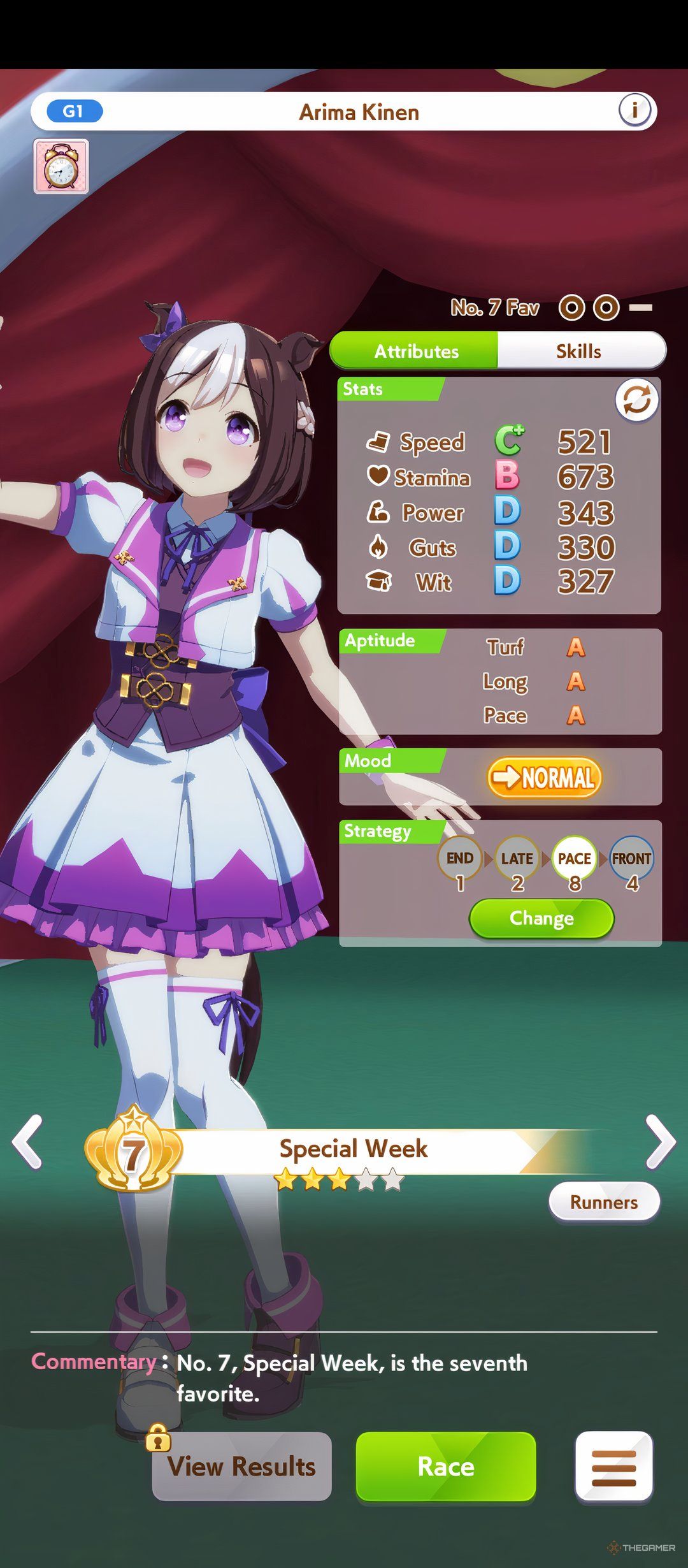 增加智慧也很重要,因為特別週的獨特技能可以提高她的速度,這可以讓你在最後的衝刺中走得更遠。提高你的速度統計數據也很重要,這樣你就不會落後。如果更多的賽車手選擇佩斯位置,您將需要能夠突破他們的力量。