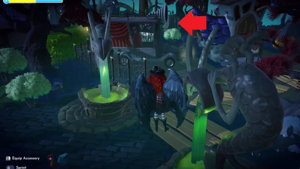 零的墳墓很容易與其他墳墓區分開來,因為它的名字就在骷髏狗圖標的正上方。它還靠近《聖誕夜驚魂》中的其他景點,包括標誌性的螺旋山、萬聖節市政廳和節日樹。