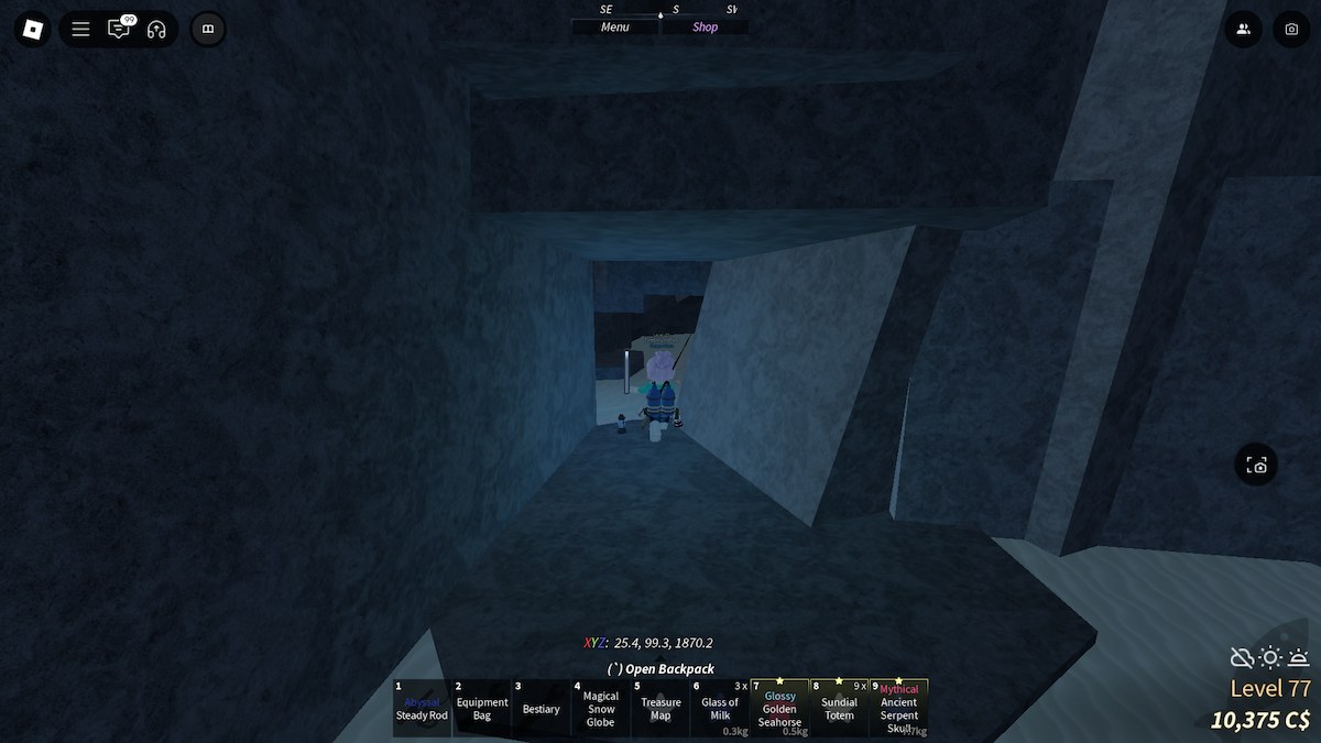 - 當您到達隧道盡頭時,讓您的頭像向上漂浮。您將重新出現在壁架與骨架和風暴圖騰,在坐標處(36.5, 135.4, 1946.2).